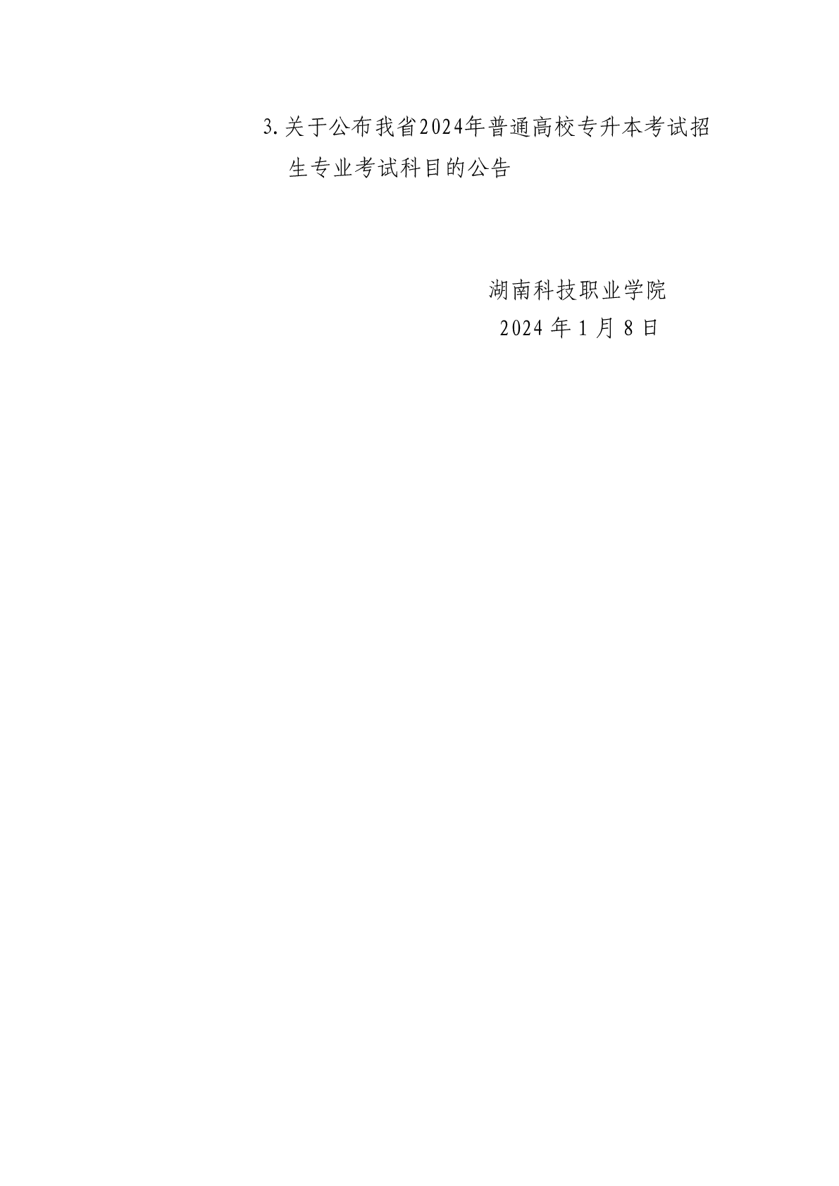 附件3:关于公布我省2024年普通高校专升本考试招生专业考试科目的公告.docx