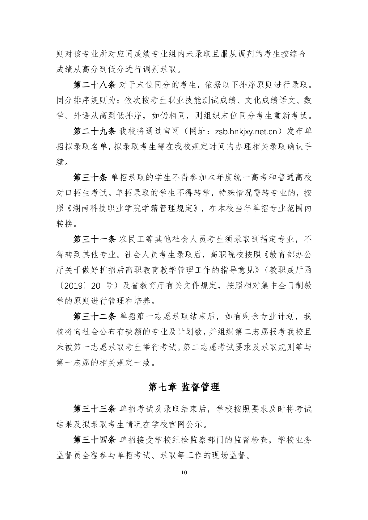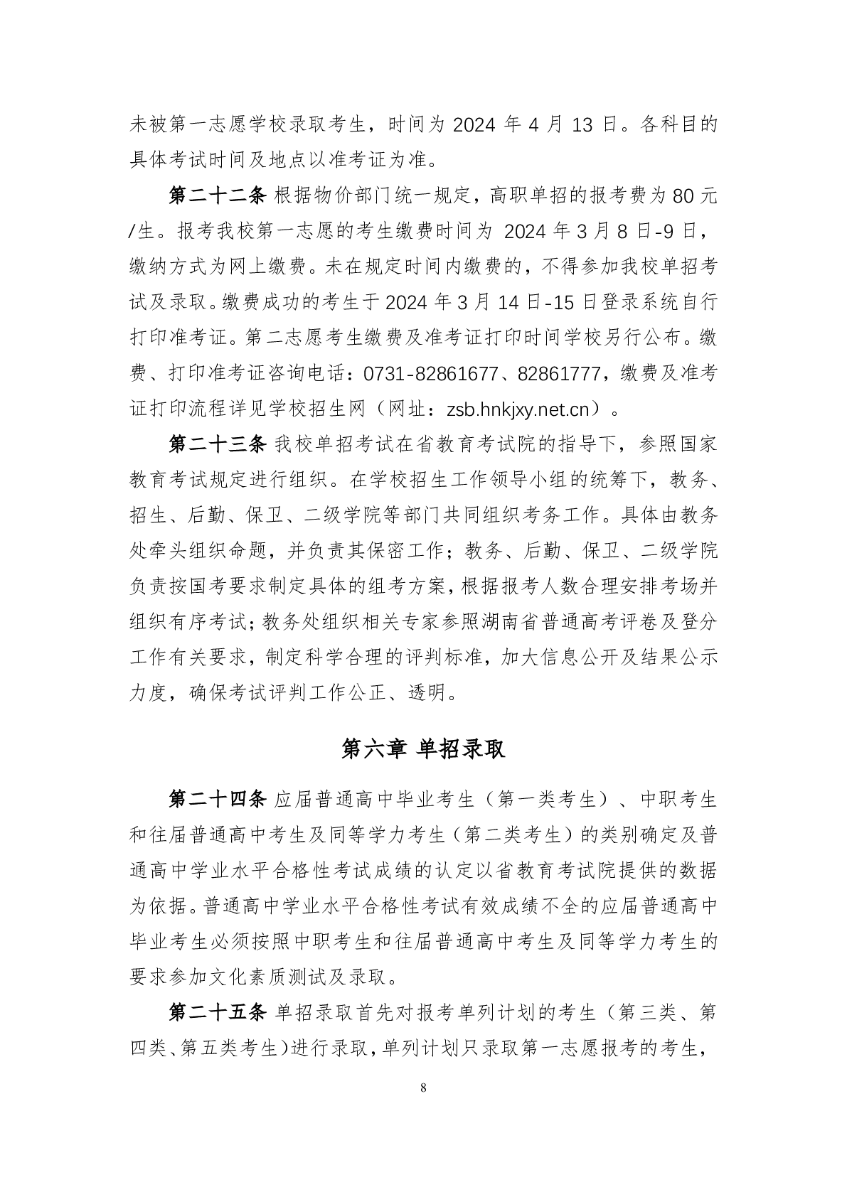 湖南科技职业学院2024年高职单招章程