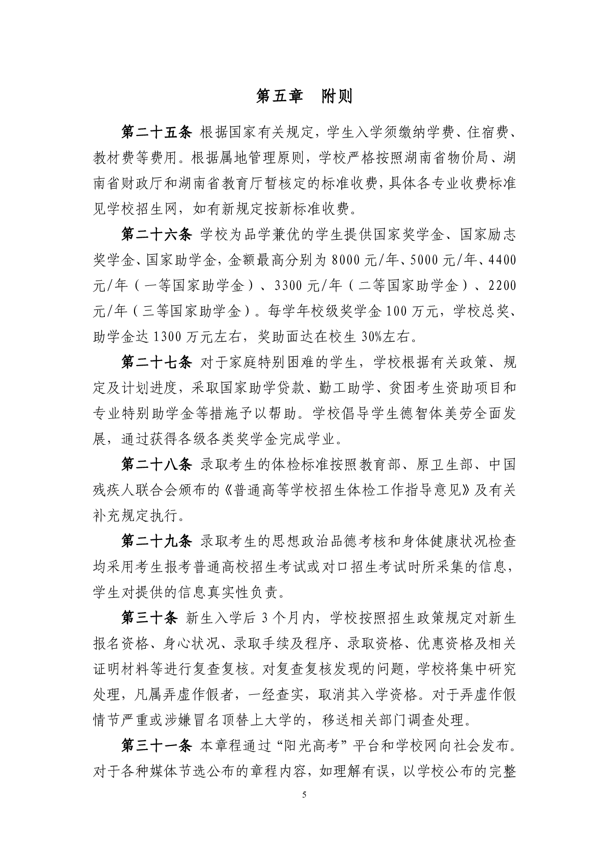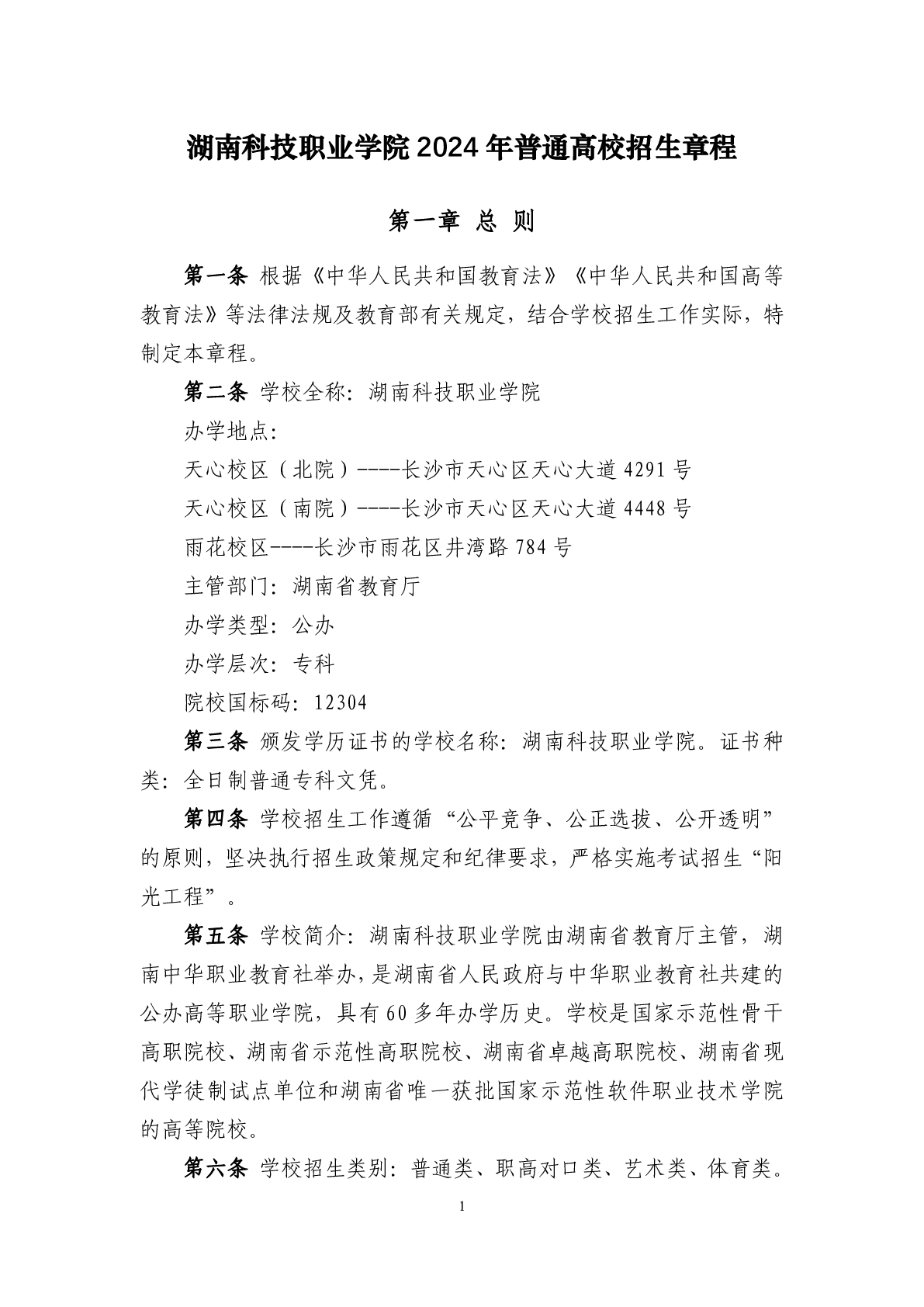 湖南科技职业学院2024年普通高校招生章程