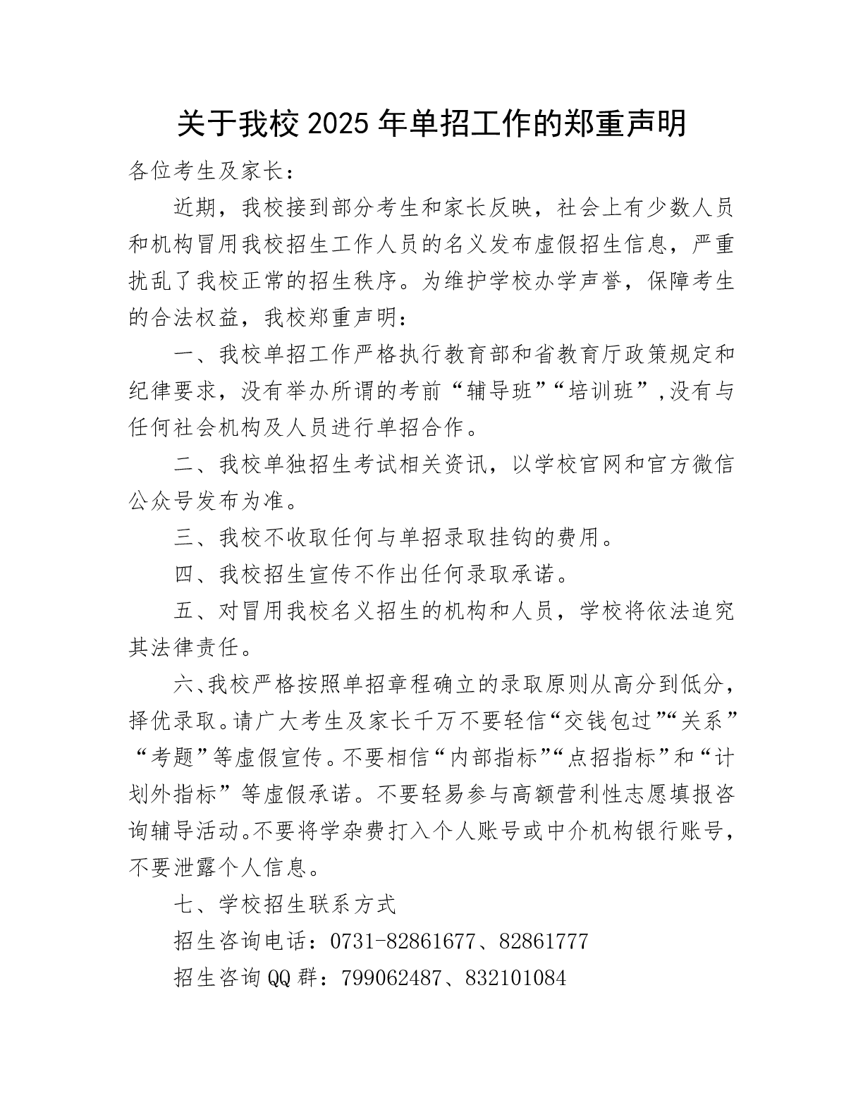 关于我校2025年单招工作的郑重声明