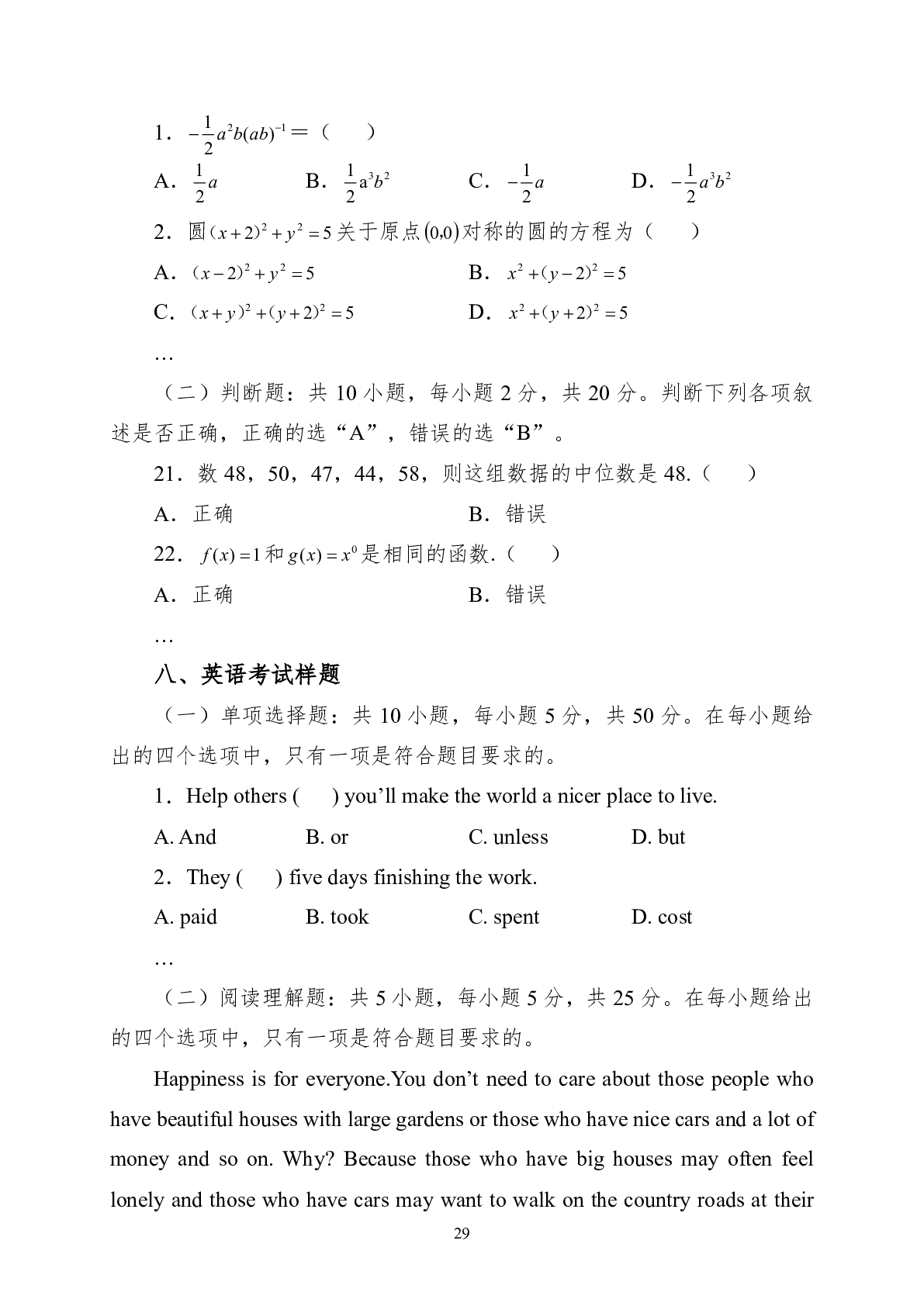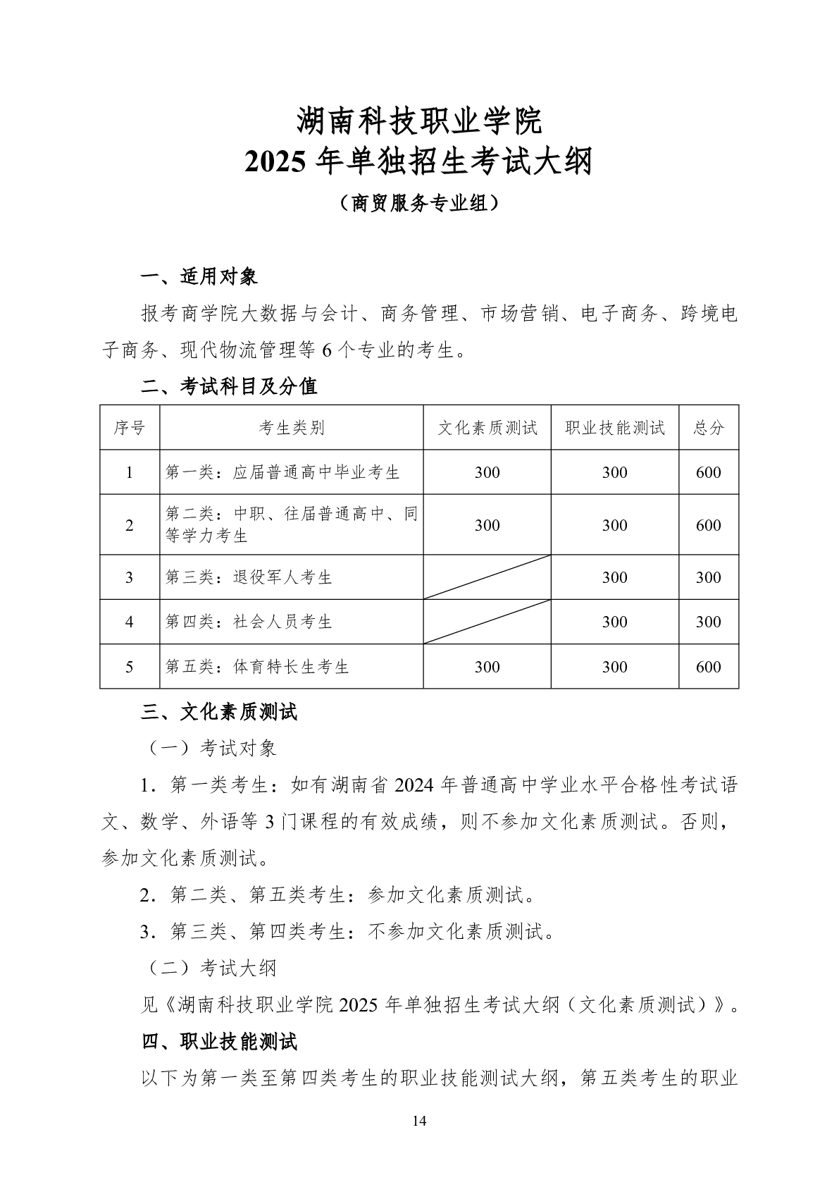 湖南科技职业学院2025 年单独招生考试大纲