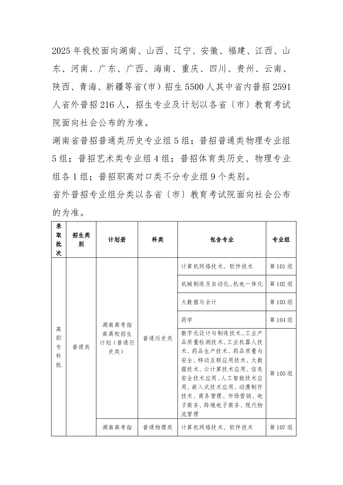 湖南科技职业学院2025年普招答考生问