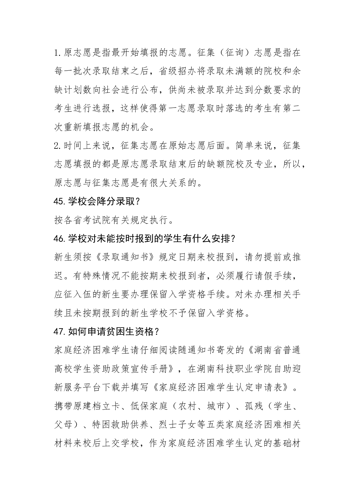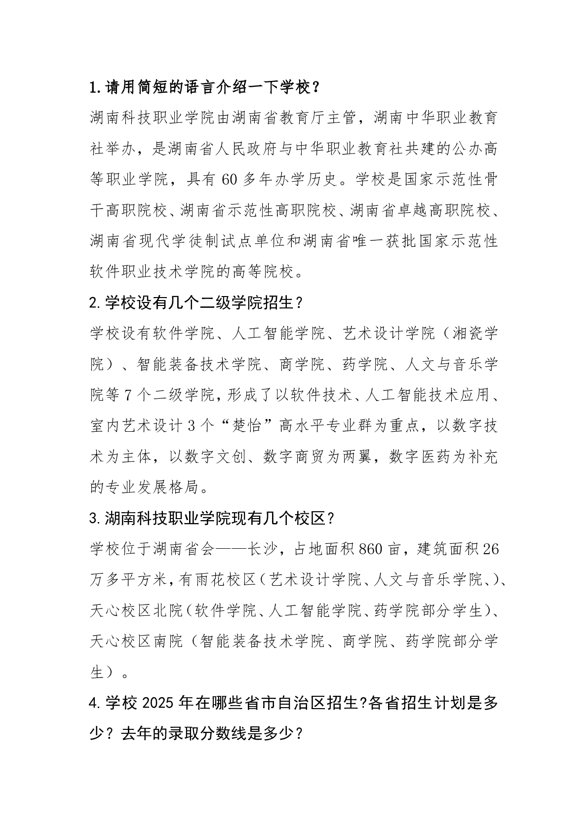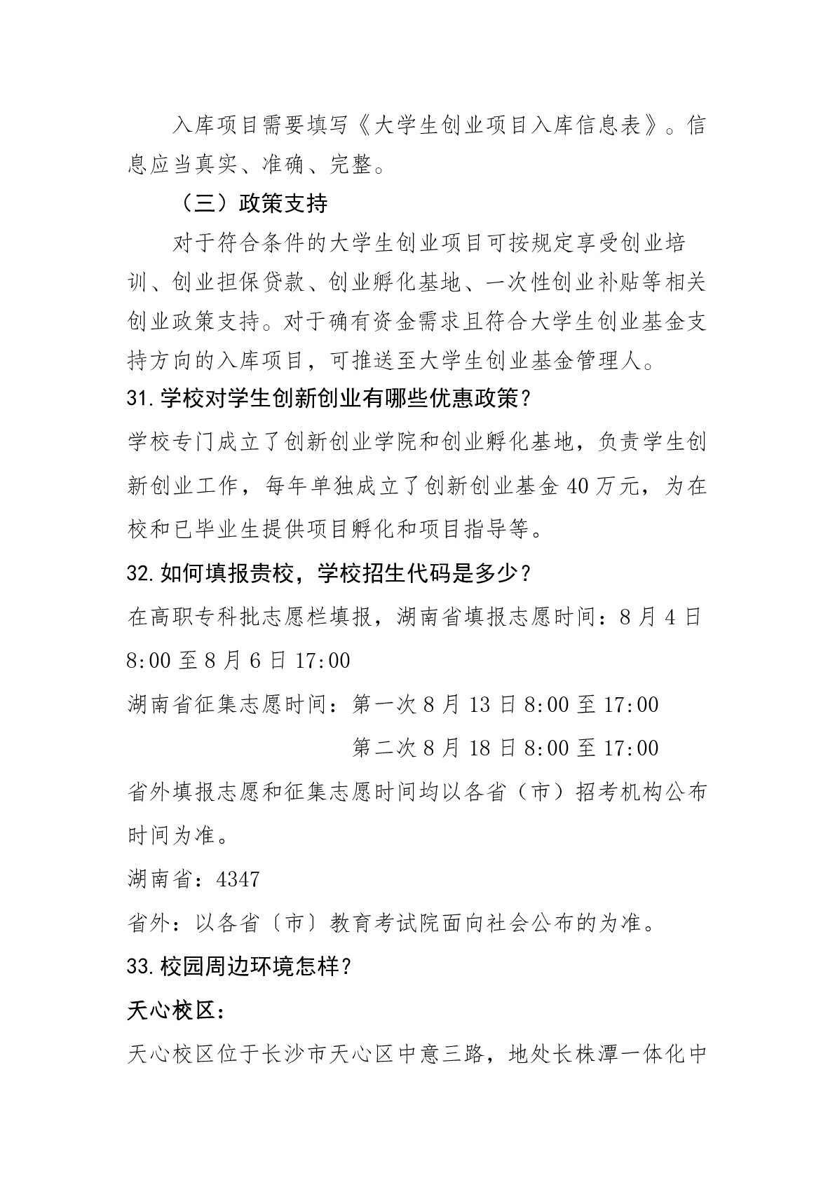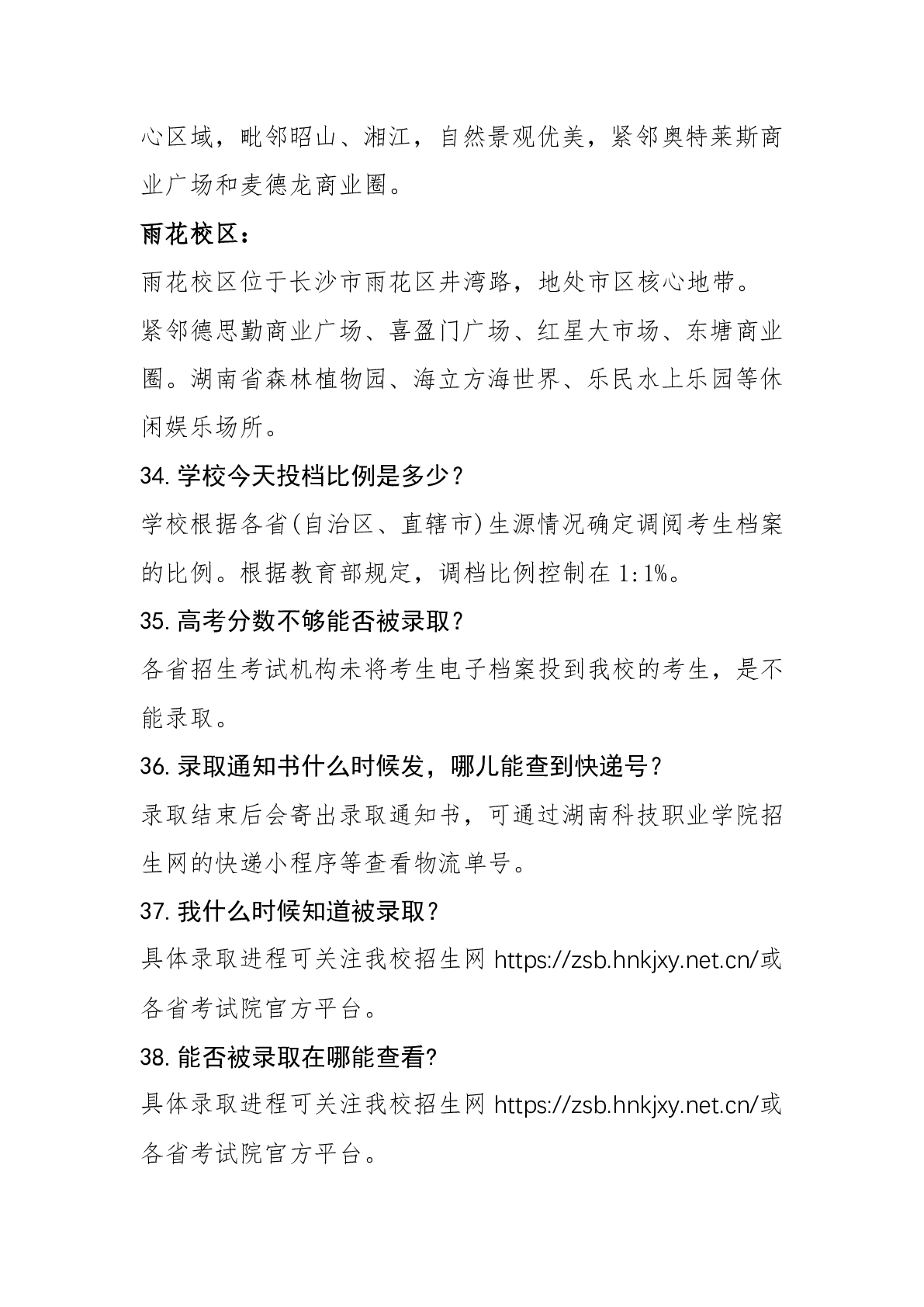 湖南科技职业学院2024年普招答考生问
