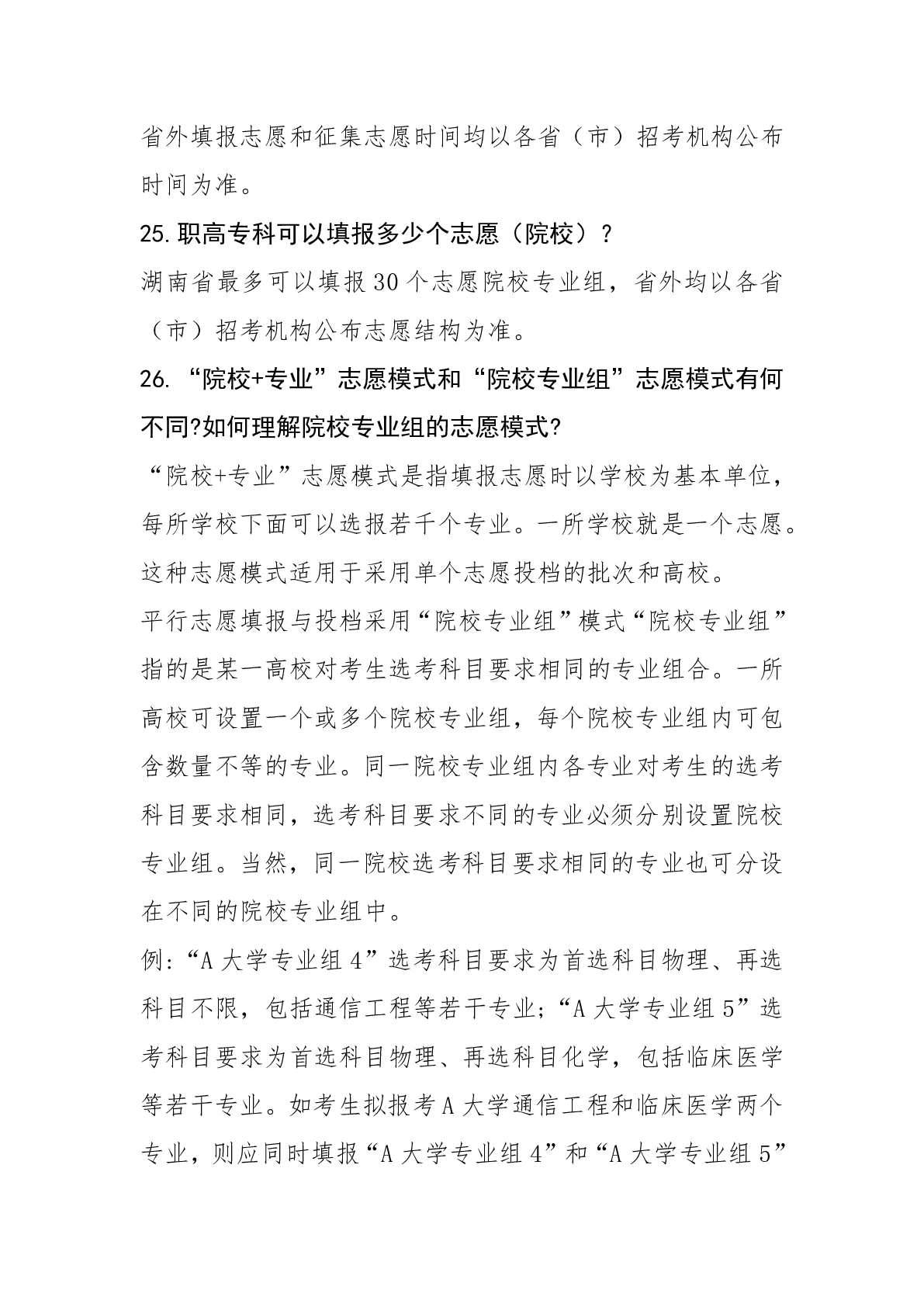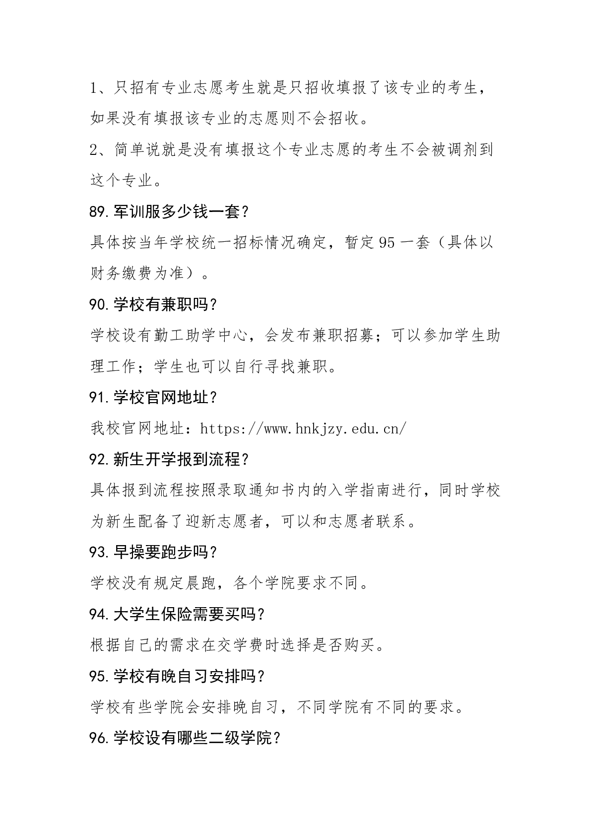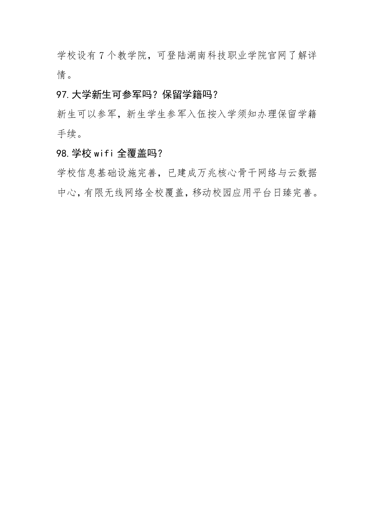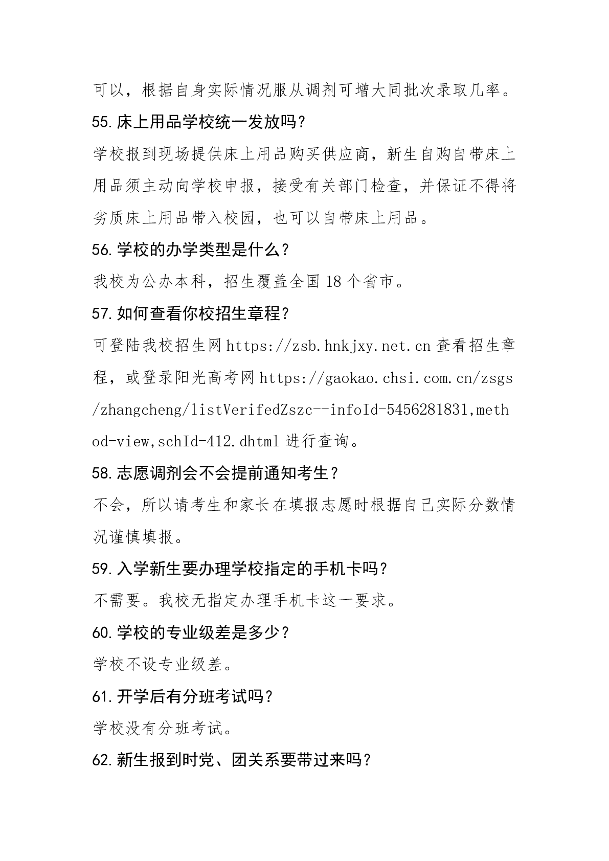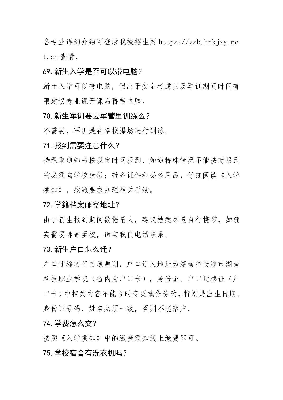 湖南科技职业学院2024年普招答考生问