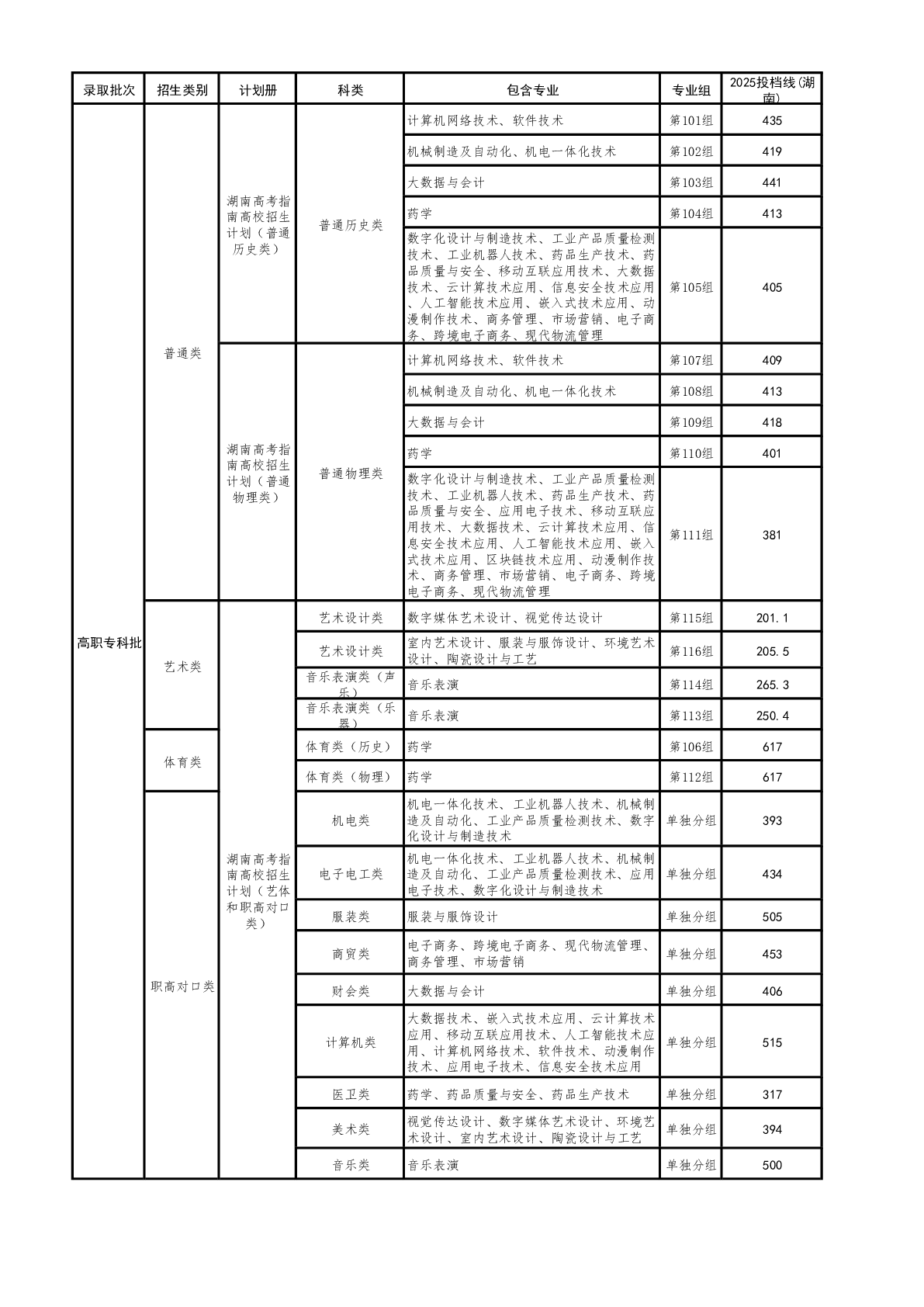 湖南科技职业学院2025年普招第一次投档分数线(湖南)