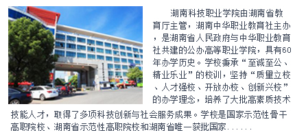 湖南科技职业学院“楚怡工匠计划”招生简章